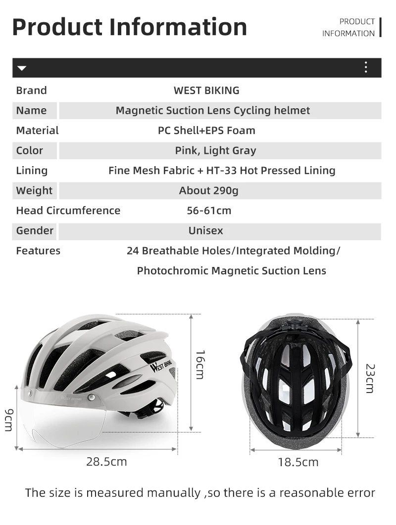 Features:24 Breathable Holes/lntegrated Molding/Photochromic Magnetic Suction Len